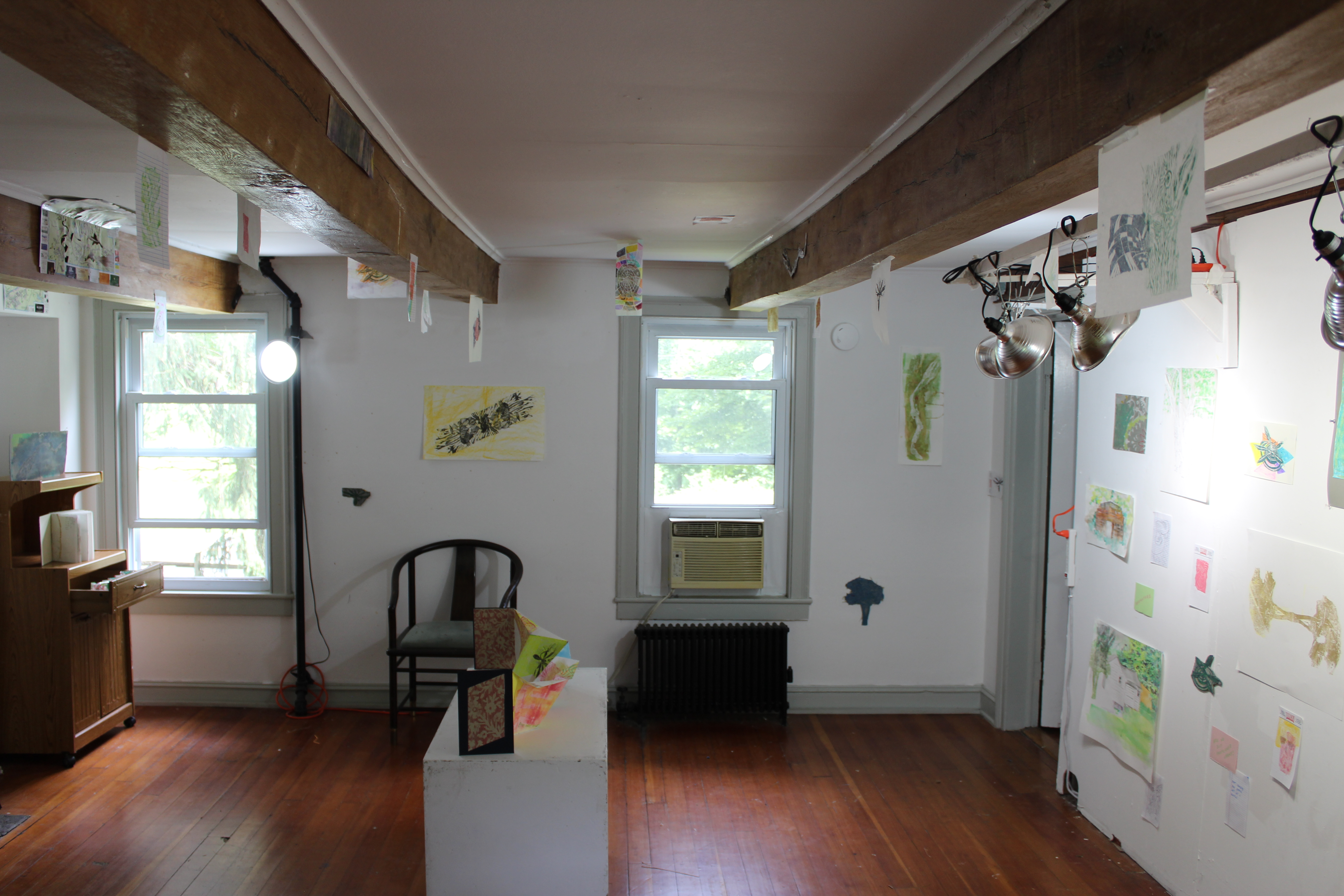 Site Specific installation with artist’s books, unique linoprints, gouache, and drawing